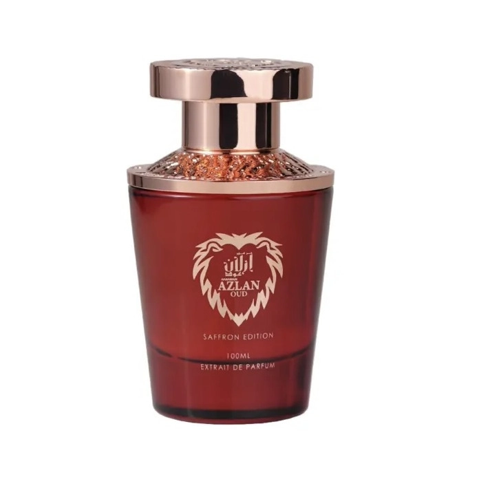 Al Haramain Azlan Oud Saffron Edition е унисекс парфюм с богат и ориенталски характер, съчетаващ свежест, пикантност и дълбочина. Началото пленява със сладките и цветни нотки на теменужка и смокиня, допълнени от топлата пикантност на шафран, който създава чувствена и загадъчна атмосфера. В сърцевината тамянът и кехлибарът добавят ориенталска дълбочина и топлина, които се усещат интензивно. Базата е съчетание от мускус и кедрова дървесина, които придават дълготрайност и завършеност.